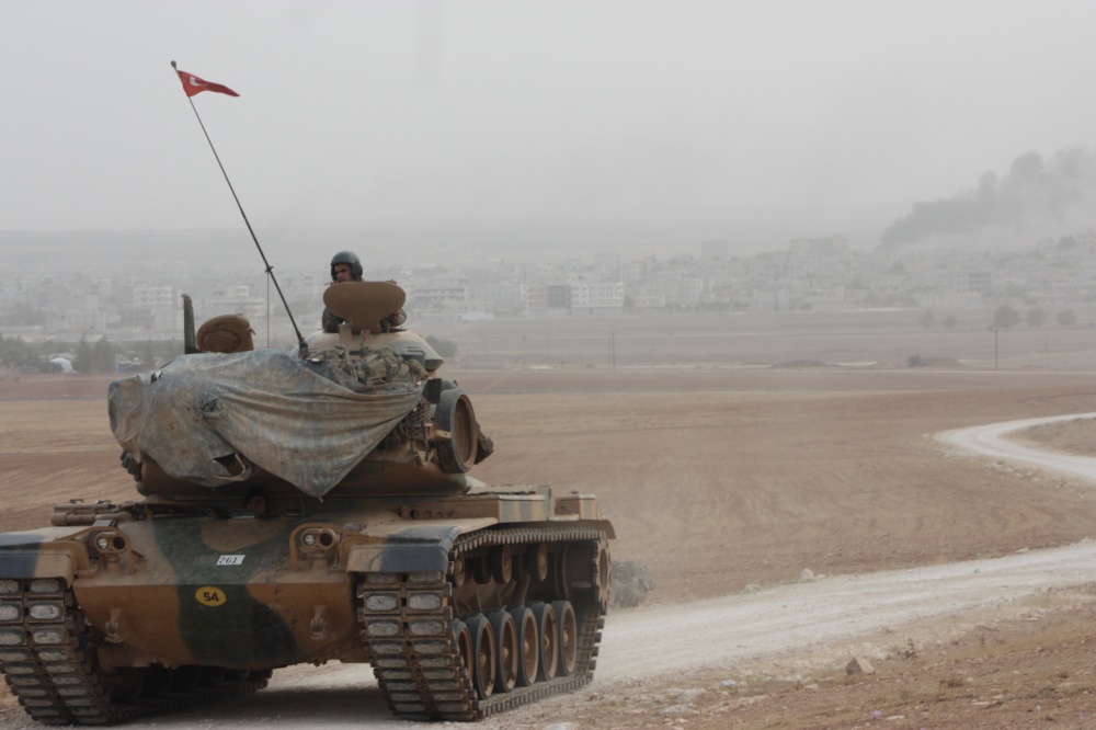 Die Lage um die syrische Stadt Kobani wird immer verzweifelter, seit die Kräfte eines sunnitischen Aufstandes seit Juni 2014 die politische Nachkriegsordnung der USA mit Leichtigkeit hinwegzufegen scheinen. Doch während sich der Aufstand im Irak gegen diejenigen richtet die die US-amerikanische Nachkriegsordnung repräsentieren, richtet sich seine militärische Hauptkraft im heutigen Syrien gegen diejenigen Kräfte die bis heute ein Teil des Aufstandes gegen das Regime in Damaskus gewesen sind. Vor allem die im Zuge des Bürgerkriegs entstandenen autonomen kurdischen Gebiete im Norden Syriens, die sich selbst als „Rojawa „ bezeichnen, sind in Syrien aktuell zum Hauptziel des Islamischen Staates (IS) geworden. Seit ca. 3 Wochen tobt um die kleine Stadt Kobani an der türkischen Grenze eine erbitterte Schlacht zwischen den kurdischen Volksmilizen und dem IS, die international für großes Aufsehen sorgen. Die politisch-militärische Zuspitzung bekommt vor dem Hintergrund eine weitere brisante Komponente indem der Konflikt auf die Türkei überzugreifen droht.