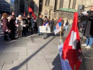 Unterstützer Symposium und Kundgebung: Serbisch-Österr. Solidaritätsbewegung, JÖSB, AIK, Gewerkschaftsinitiative Komintern, Gewerkschaftlicher Linksblock, Initiative Plattform Demokratie, Bündnis „Stimmen für Neutralität“, Solidarwerkstatt Österreich, Dachverband serbischer Vereine- Savez Srba, Serb.-Orthodoxer Jugendverein Innsbruck-SPOJI, Prosvjeta Austrija