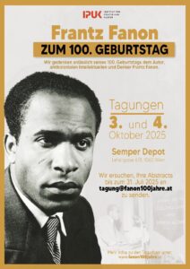 *Frantz Fanon* (1925–1961) hat mit seinen Werken die *Rassismus- und Postkolonialismusforschung nachhaltig geprägt*. Das Institut für Politik und Kultur (*IPUK*) möchte seinen Geburtstag zum Anlass nehmen, um den *Menschen Fanon* durch die Auseinandersetzung mit seiner *Philosophie, seinem Aktivismus und seinem politischen Vermächtnis* zu würdigen.